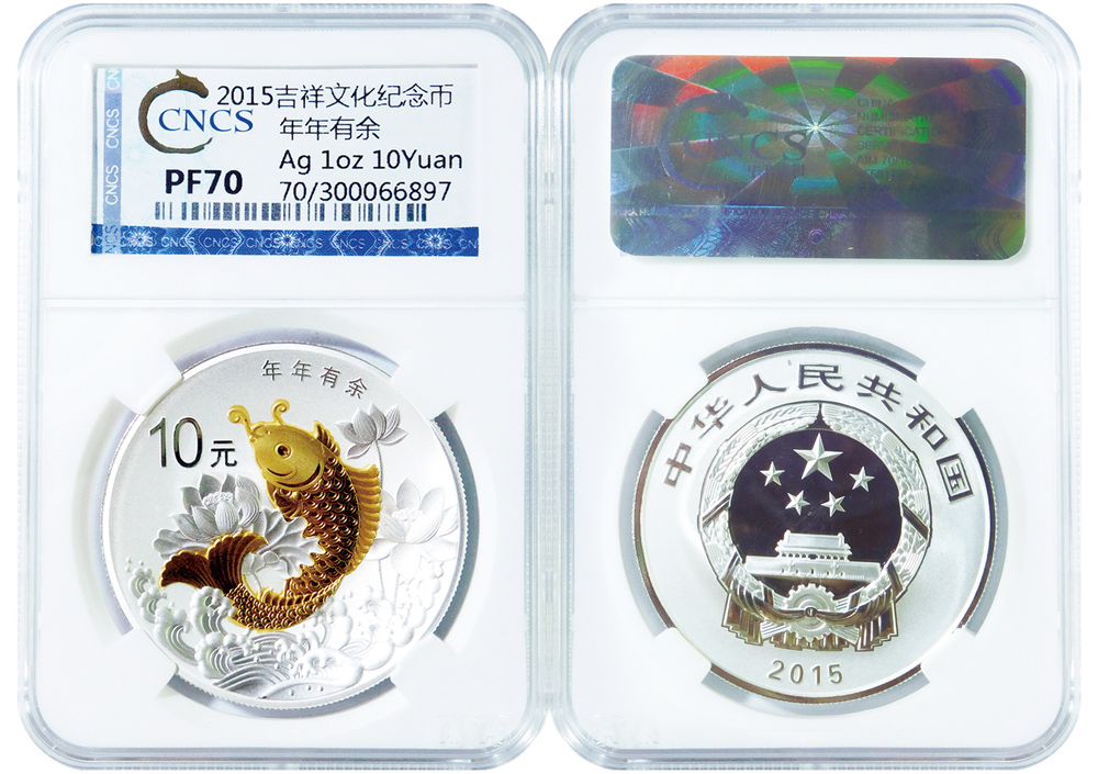 編號(hào):2015-0307-ag-1oz,年號(hào):2015,國別:中國,面額:10元,材質(zhì):銀,成色:99.9%,質(zhì)量:精制,重量:31.104克(1盎司),形狀:圓形,直徑:40mm,發(fā)行量:60000枚。